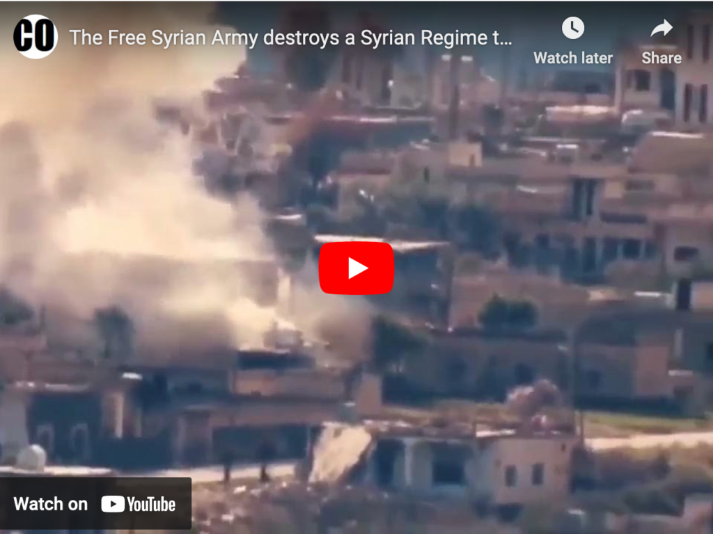 The Free Syrian Army destroys a Syrian Regime tank using a guided TOW missile