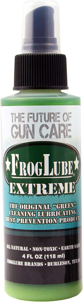 Consider FrogLube Extreme if non-toxic or non-corrosive is your top goal in a solvent and lube that doubles as both. Just be aware that there are certain limitations. While keeping your gun parts lubricated and doing an amazing job of reducing copper and lead fouling, this product needs to be applied precisely. FrogLube will clog up your action if you leave any extra on your gun’s components.